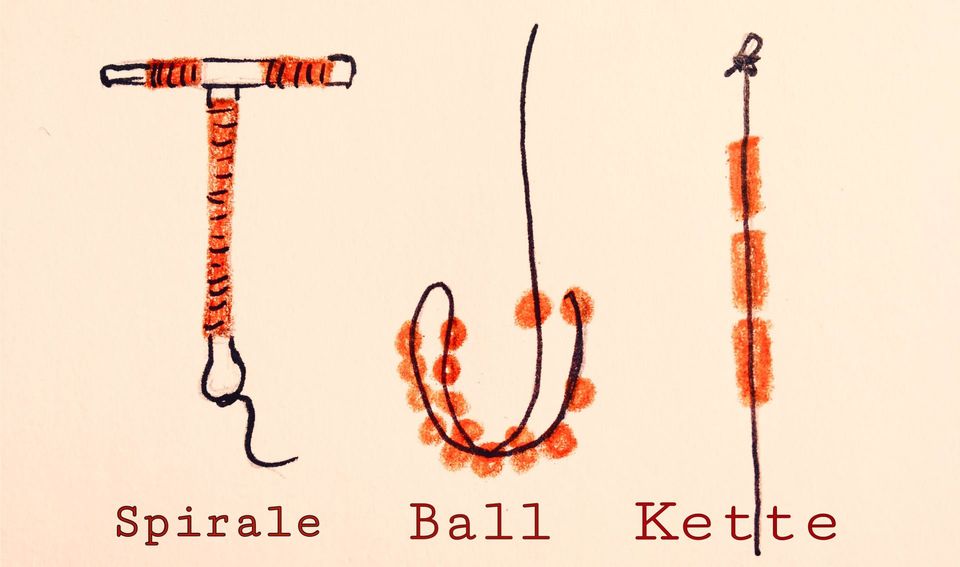 Es gibt zur Zeit drei Sorten von kupferbasierter Verhütung. Die bekannteste ist wohl die Kupferspirale. Dann gibt es noch den Kupferball und die Kupferkette.